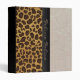 Stylish leopard print pattern and faux glitter binder with personalized name- Name on the front vertically on a black ribbon. Text may be changed, like Favourite Recipes, for example. With half of background brown leopard spots pattern animal print and other half faux glitter with specks of pink. Black spine. Same design on back. This classy recipe binder will suit many different tastes and ages. There are so many other uses for this binder- chic school binder, modern recipes cookbook, makeup artist portfolio, hair stylist or boutique album, bridal shower recipe book, etc. Cool back to school gift for teen girl. Visit Zazzle.com/angela65 shop for other glam binder books.