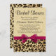 Leopard Print with bright hot pink fuchsia Bow Bridal Shower Invitation is great for the feminine female girly girl with a flair for fashion and modern style. Shades of gold and black leopard or cheetah wild animal safari theme is chic and classy.
