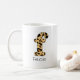 Personalize this custom leopard print lowercase letter "f" coffee mug by adding a name. The custom name is in a girly handwritten type font.