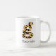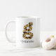 Personalize this custom leopard print lowercase letter "g" coffee mug by adding a name. The custom name is in a girly handwritten type font.