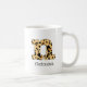 Personalize this custom leopard print lowercase letter "n" coffee mug by adding a name. The custom name is in a girly handwritten type font.