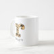 Personalize this custom leopard print lowercase letter "r" coffee mug by adding a name. The black text for the custom name is in a girly handwritten type font.