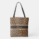 Leopard Print Pattern Brown and Gold Stripe Name Tote Bag