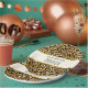 Birthday paper plates with a stylish pattern. Exotic black leopard spots on a gold background. Wild yet elegant style.