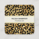 Business cards with a stylish pattern. Exotic black leopard spots on a gold background. Wild yet elegant style. The middle portion of the business card has a cream coloured border, 2 faux gold foil stripes and your personalized text inside.