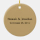 The anniversary ornament we ordered for my inlaws is beautiful. The color is perfect, and it arrived with a sweet little velvet pouch to store it in. My only complaint is that it was too late in arriving for it to be a Christmas gift, but in hindsight I should have ordered it earlier! The quality is top notch. The printing of the photo on the ceramic is great, clear and vibrant.