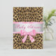 Leopard Print Pink Bow Baby Shower Invitation
