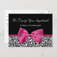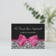 A trendy black and white leopard print hair and beauty salon appointment reminder postcard with a girly bright pink ribbon tied into a cute bow. Personalize this stylish animal print design by adding the name of hairstylist or beautician. Flat printed image, not actual ribbon.