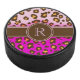 A unique leopard print style monogram puck in bright pink and brown hues. A perfect gift for a teen girl or uni gift. Personalize this item with the initial of your choice. This example reads: R. Design by Sarah Trett for www.mylittleeden.com