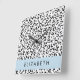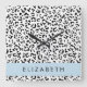 Leopard Print, Spots, Black And White, Your Name Square Wall Clock