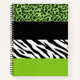 Leopard Print, Zebra Print, Animal Print, Green Notebook