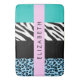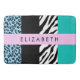 Leopard Print, Zebra Print, Blue, Your Name Bath Mat