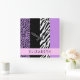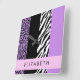 Leopard Print, Zebra Print, Purple, Your Name Square Wall Clock