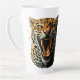 Fierce Powerful Leopard Roaring attack portrait close up with long fangs. Original vector illustration isolated on white Copyright BluedarkArt TheChameleonArt.