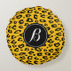 Leopard rosettes custom monogram round throw. Personalized wild animal spots pattern monogrammed with name initial letter. Elegant typography. Exotic home decor. Yellow or custom colour.