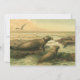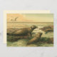 Vintage illustration marine life mammal animal image by Gustav Mützel (1839-1893); a German artist, famous for his animal paintings. Leopard seals are sitting on the rocky beach by the seashore. There are seagulls flying in the air over the gentle ocean waves.