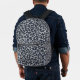 Animal Fur Back to School Backpack - Leopard Skin Pattern Denim Navy Blue Freckles on a grey Background - is a human made, seamlessly repeating aesthetic Artwork. The main colors in this pattern are denim blue, navy blue, grey, black