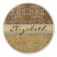 This design is made with brown leopard spots and a gold glitter that sparkles on the bottom. The centre is left for personalization / personalize surrounded with white diamond rhinestones. (Photo Printed)