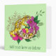 A leopard gecko sits amongst flowers and henna against a backdrop of green