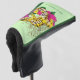 A leopard gecko sits amongst flowers and henna against a backdrop of green