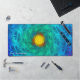 Image fractale multicolore (bleu, jaune, vert) ressemblant à des papillons ou des papillons de nuit se dispersant d'un point central. Ajoutez votre propre texte.
