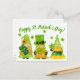 This cute St. Patrick's Day postcard features three leprechaun gnomes dressed in green with shamrocks and a pot of gold. Designed by Susan Coffey.