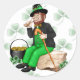 Adorable Irish Leprechaun smoking his pipe while he rests beside his pot of gold. Delightful design for St. Patrick's Day or year round enjoyment.