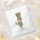 These St Patrick's Day favour bags feature a cute watercolored Leprechaun with the phrase "Happy St Patrick's Day in a green serif font.
