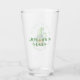 This fun glass is perfect for your green beer on St. Patrick's Day. It features a gnome leprechaun dressed in green with lots of shamrocks, clover and flowers around him. Above him it says Let the Shenanigan's Begin! On the reverse side you personalize it with your name.