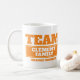 L'équipe orange a personnalisé la tasse. Idéal pour les équipes de bureau, les événements en famille, les jeux amusants ou les équipes sportives. Personnalisez ce design de tasse avec votre propre nom d'équipe ou de famille et l'année de création de l'équipe ou de la devise. Autres couleurs disponibles. Grand comme un cadeau Père Noël secret de bureau, merci ou cadeau d'équipe de motivation. Conçu par www.mylittleeden.com sur zazzle