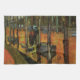 Les Alyscamps by Vincent van Gogh is a vintage fine art post impressionism daily life portrait painting featuring a view of the Allee des Tombeaux. A couple is walking down a path lined with poplars between rows of ancient sarcophagi in the cemetery just outside of Arles, France. Benches are next to the trees for people to rest.