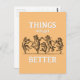 Nous avons tous besoin d'encouragement dans les moments sombres. Donnez à vos amis une lueur d'espoir avec cette charmante carte présentant une illustration vintage d'animaux dansants et un message optimiste. Cela va sûrement leur remonter le moral. Et ils remonteront le vôtre.
