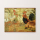 OEuvre vintage sur un puzzle mettant en vedette les coqs et les poules.