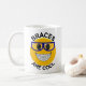 Les croisillons sont visage souriant frais avec les verres bleus. Tasse chaude de boisson/café. Grand cadeau pour un dentiste ou un orthodontiste, ou membre du personnel dentaire. Donnez aux enfants avec des croisillons pour une tasse d'amusement de chocolat chaud ! Vente, don de cadeau, cuisine dentaire ou orthodontique de bureau, croisillons de port de sourire jaunes mignons de visage etc. et verres bleus.