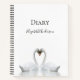 Simple, élégant et romantique ! Deux jolis cygnes blancs amoureux se serrant la tête pour un baiser tendre, les têtes formant un coeur. Un couple de cygnes reste ensemble pour la vie, ils sont donc le symbole parfait de l'amour. Arrière - plan blanc et élégant. Modèle pour votre nom, noir, moderne écriture de style manuscrit. Un collège a statué sur le journal. Pourquoi ne pas commencer un journal pour enregistrer ces temps incertains à préserver pour les générations à venir ?