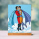SlipperyJoe's deux super-héros embrasser dessin animé volants costumes colorés collants embrasser et embrasser cadeaux gay pride artistiques LGBTQIA promouvant l'inclusion diversité croisés moment tendre couleur rouge cape orange costume violet cape