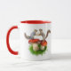 Une paire d'écureuils dansent sur des champignons rouges sur cette tasse parfaite pour un cadeau de Saint-Valentin ou d'anniversaire.