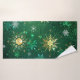 Arrière - plan de Noël vert avec des flocons de neige en or et bijoux verts. Des flocons dorés. Noël.