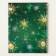 Arrière - plan de Noël vert avec des flocons de neige en or et bijoux verts. Des flocons dorés. Noël.