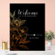 Le design est composé d'élégantes fleurs dorées, de feuillage et d'un simple script "Welcome".