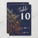 Une carte de numéro de table indépendante avec des fleurs dorées dessinées à la main et des feuilles d'eucalyptus. Affichez les articles correspondants dans mon magasin "DreamHut".