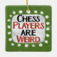 "Les joueurs d'échecs sont bizarres" est un design de texte mignon en vert avec du texte en noir et rouge, avec une forme d'accent blanc et des points blancs texturés.
