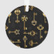 Seamless pattern of antique, gold and silhouette keys on black background.