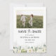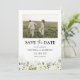 Les Roses Blanches Sauvegardent La Date avec Photo Flat Card. Cette invitation de mariage élégante et élégante présente de magnifiques aquarelles peintes à la main de verdure Roses blanches. Trouvez les articles correspondants dans la Collection Mariage Watercolor Greenery White Roses.