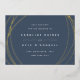 Annoncez votre date et votre emplacement mariage dans le style moderne chic avec ces cartes de date élégantes enregistrer les détails abstraits et géométriques sur un arrière - plan bleu marine fumé. L'avant présente vos détails mariages en lettrage moderne minimaliste, encerclé par des formes de sphère irrégulières en or élégant. Ajoutez des détails supplémentaires, comme votre site Web mariage, à l'arrière.