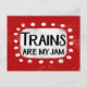 "Trains Are My Jam" est un design de texte amusant avec une forme d'accent blanc entourée de points blancs texturés.
