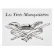 Poster with a design refering to Alexandre Dumas book "Les Trois Mousquetaires", i.e. "The Three Musketeers". This historical novel tells the adventures of four heros and friends: d'Artagnan, Athos, Aramis and Porthos. It takes place in 17th century France. The symbol is inspired by a French plate of the time.