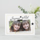 Belle carte française de vacances avec le support d'endroit de photo avec les mots "Joyeux Noël". Or, couleurs noires et blanches avec la police de manuscrit avec le cadre d'or sur un arrière - plan blanc avec l'illusion 3D de la photo attachée du ruban adhésif à la carte. Carte de vacances de photo de Noël. Le joli motif de confettis d'étoiles soutiennent dessus dans l'or et le blanc. Le © d'Elke Clarke plus de carte photo de vacances et colore des conceptions disponibles dans mon magasin chez www.zazzle.com/monogramgallery