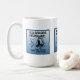Illustration graphique d'un voilier, d'un canot et d'un marin sur une tasse par l'artiste et designer Charmaine Paulson. Le texte dit : "Les vieux marins ne meurent jamais - ils ne font qu'un petit canot". ©2013charmainepaulson