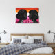 LGBTQIA+ Pride wall art. Love is Love. Two silhouettes of women in front of an LGBT lesbian flag with a cool texture to it.